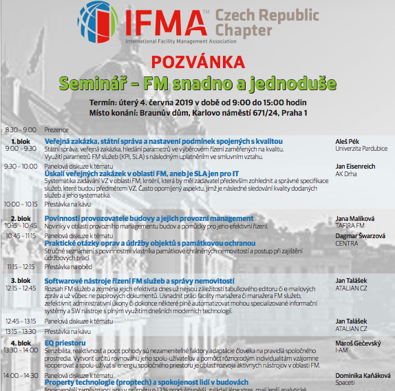 Seminář FM snadno a jednoduše, pořádá IFMA CZ s určením pro FM manažery ve sféře státní správy